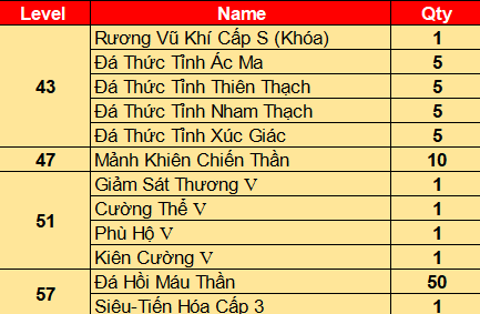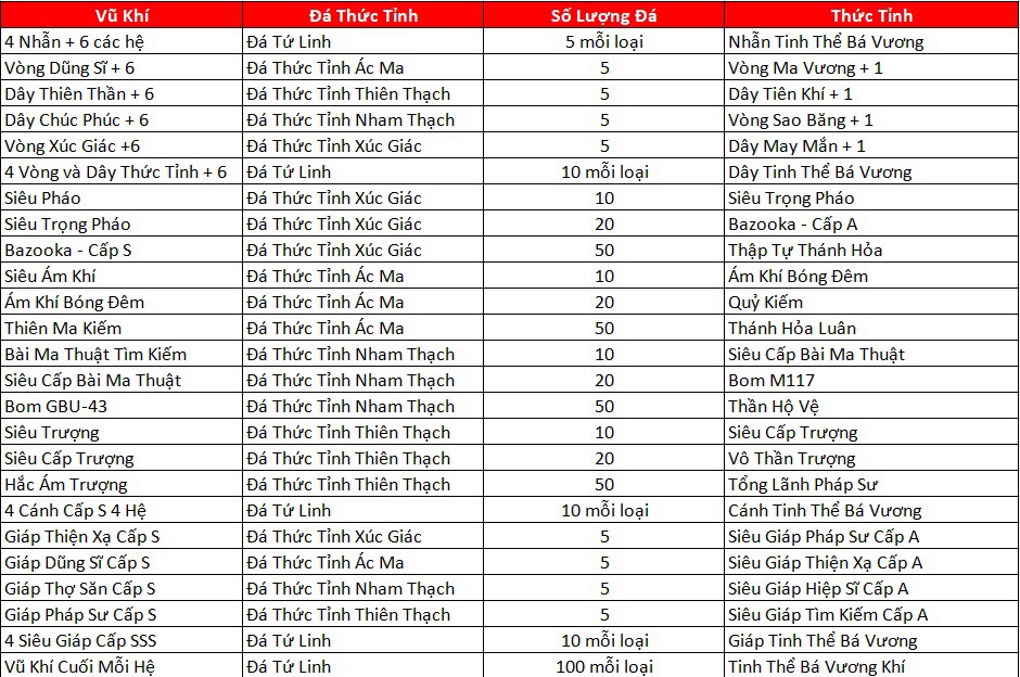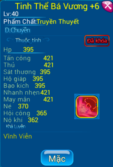 - Rương Giáp Thần : Có các giáp có thể thức tỉnh được giáp Tinh Thể Bá Vương