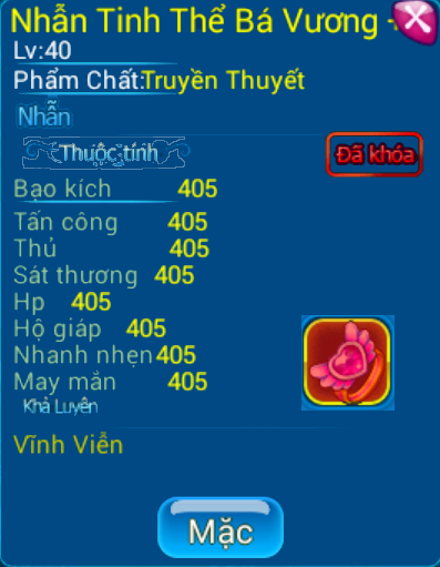 - Nhận gói quà mở ra trang sức cấp cuối - có cơ hội nhận được trang sức Tinh Thể Bá Vương