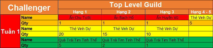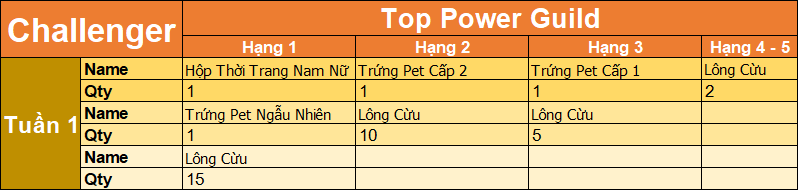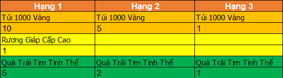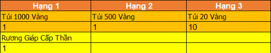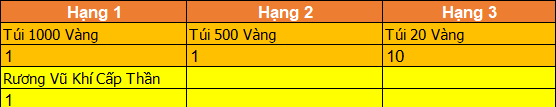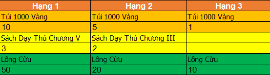 - Tuần 1 : Trao giải vào lúc 23h sau thời gian bảo trì mỗi tuần.
