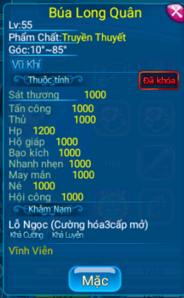1 Búa Văn Lang + 1 Búa Xích Quỷ + 1 Búa Âu Lạc + 50 Tiên Khí + 50 Long Khí = 1 Búa Long Quân