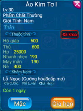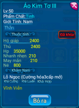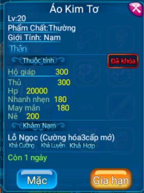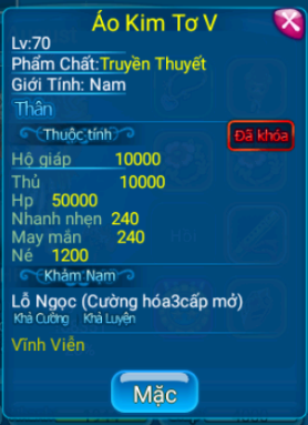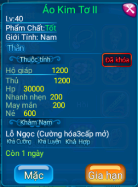 Áo Cừu Nam Level 40 + Áo Thánh Chiến Nam Cấp S + 200 Kim Tơ = 1 Áo Kim Tơ Level 20
